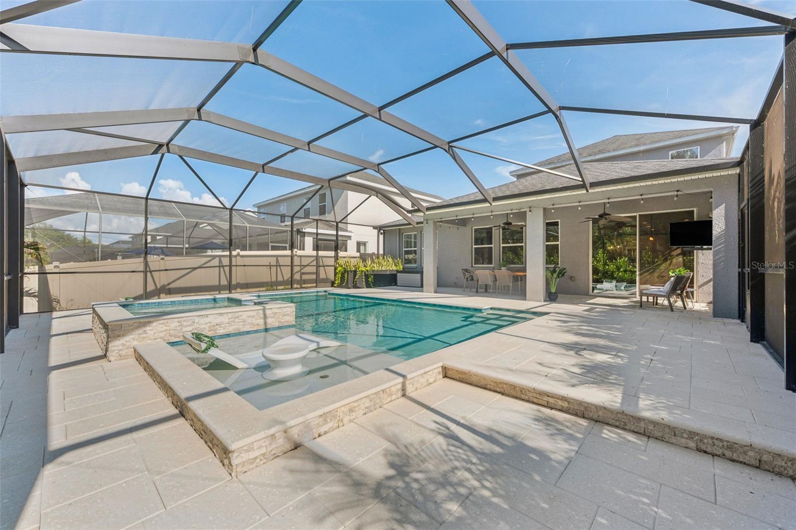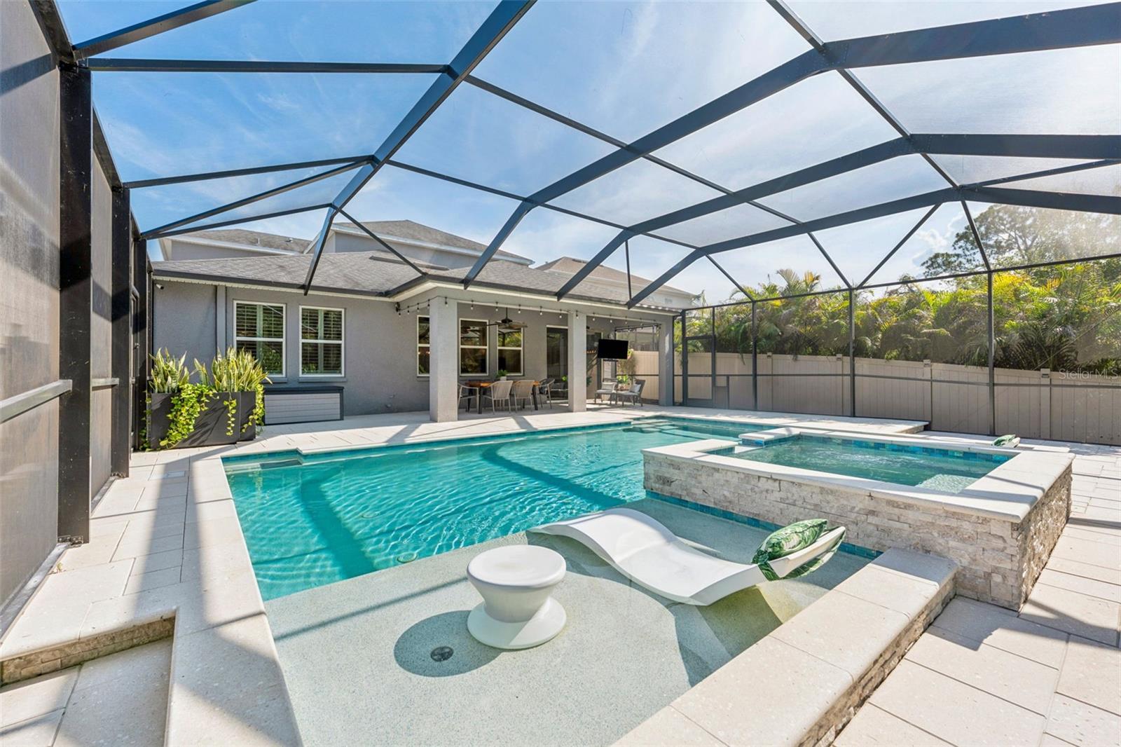 Step outside into your own private backyard oasis, complete with a gorgeous pool AND hot tub and complete with sun shelves and pool loungers. Enjoy being surrounded by professional landscaping, space to relax, dine, and unwind. Whether you're hosting weekend get-togethers or enjoying a peaceful evening swim, this outdoor space is sure to impress.
